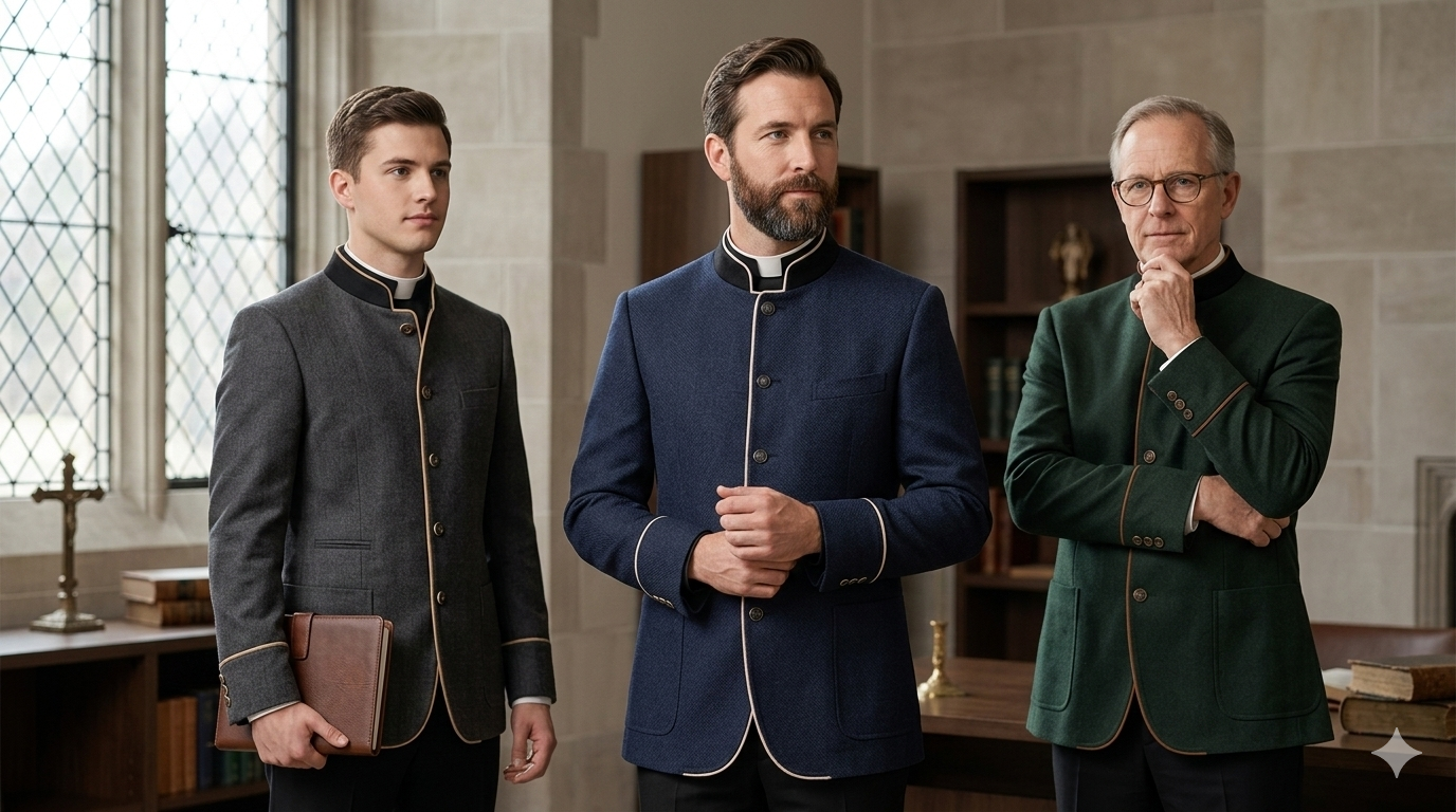 Premium clergy suits and sacred vestments, handcrafted for Christian fathers who lead with grace.