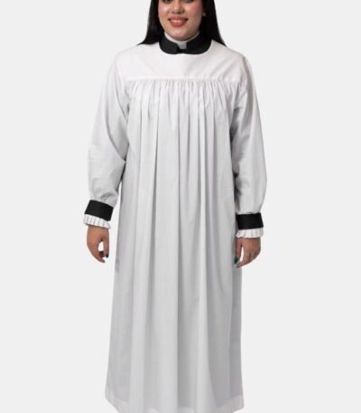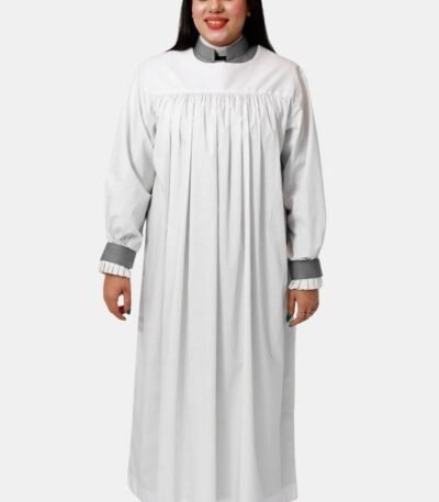 Nexora Clergys Women’s Clergy Rochet – Cardinal Grey Cuff Edition